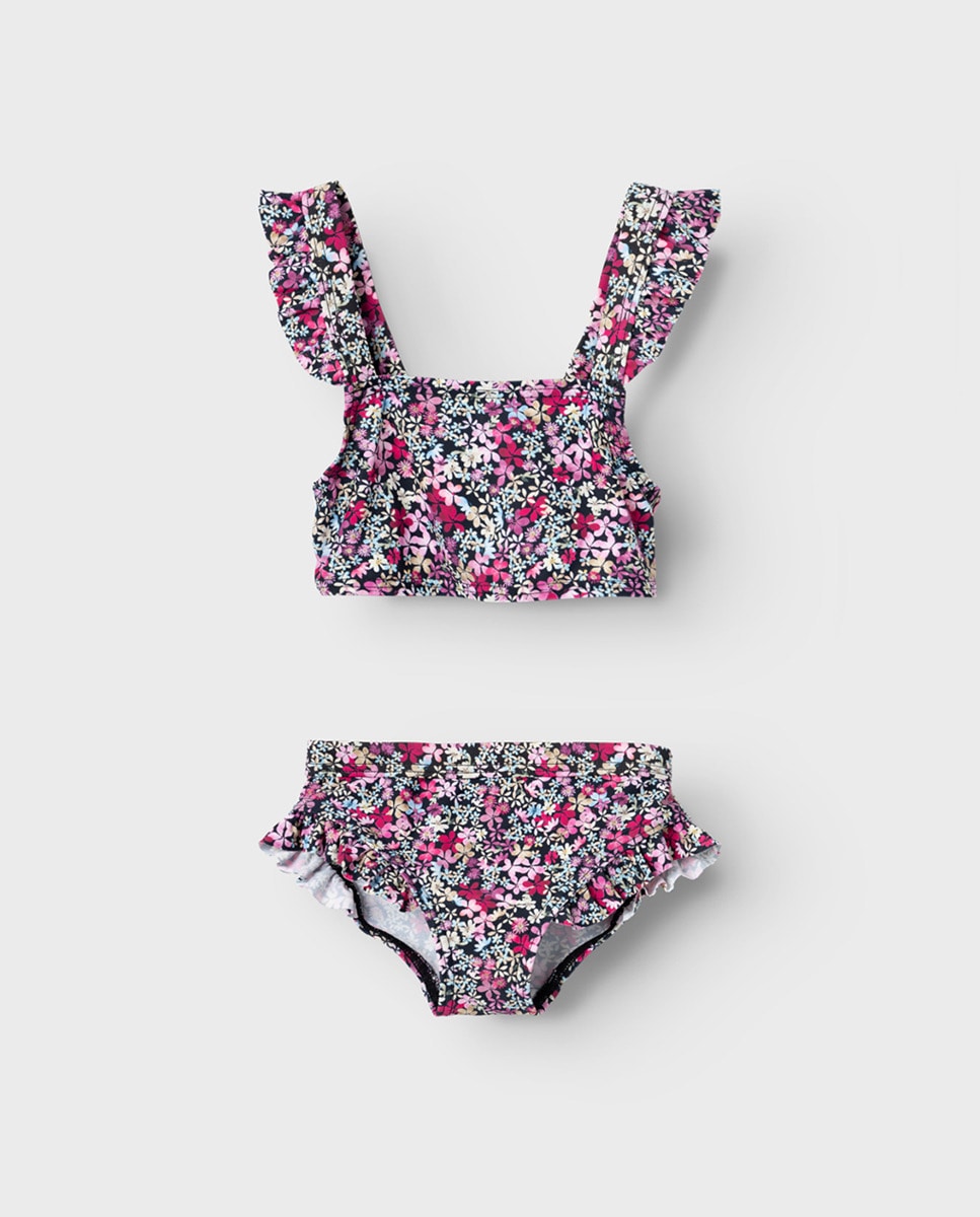 Bikini de niña de flores con detalle volante
