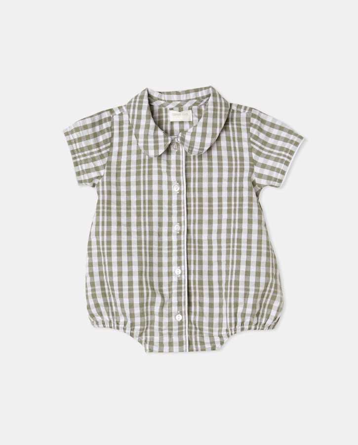 Pelele de bebé niño con cuadros verdes
