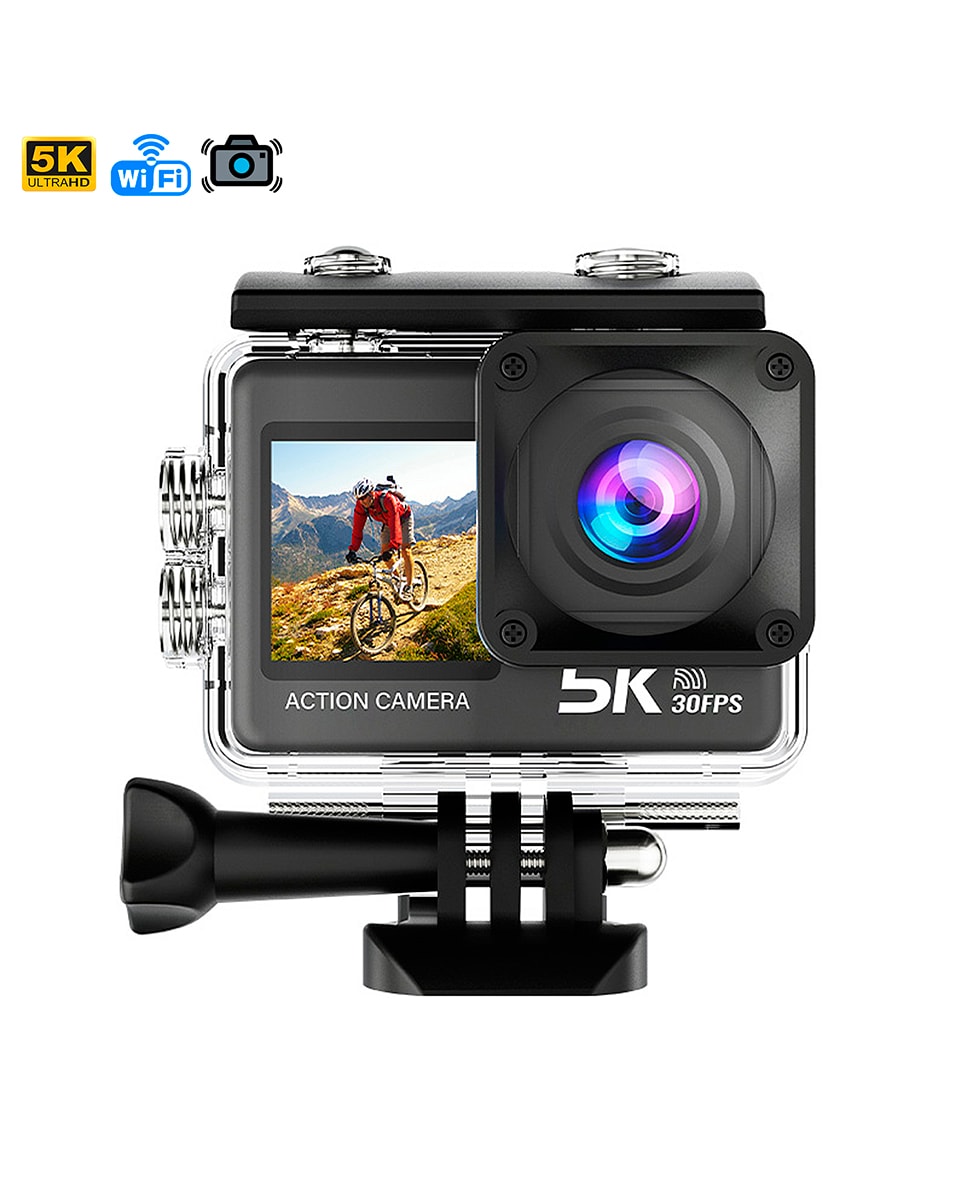 Cámara Deportiva M60 TR 5k 30fps con 47,5 mpx, doble pantalla de 2" y 1.3", estabilizador de imagen, multitud de accesorios y WIFI.