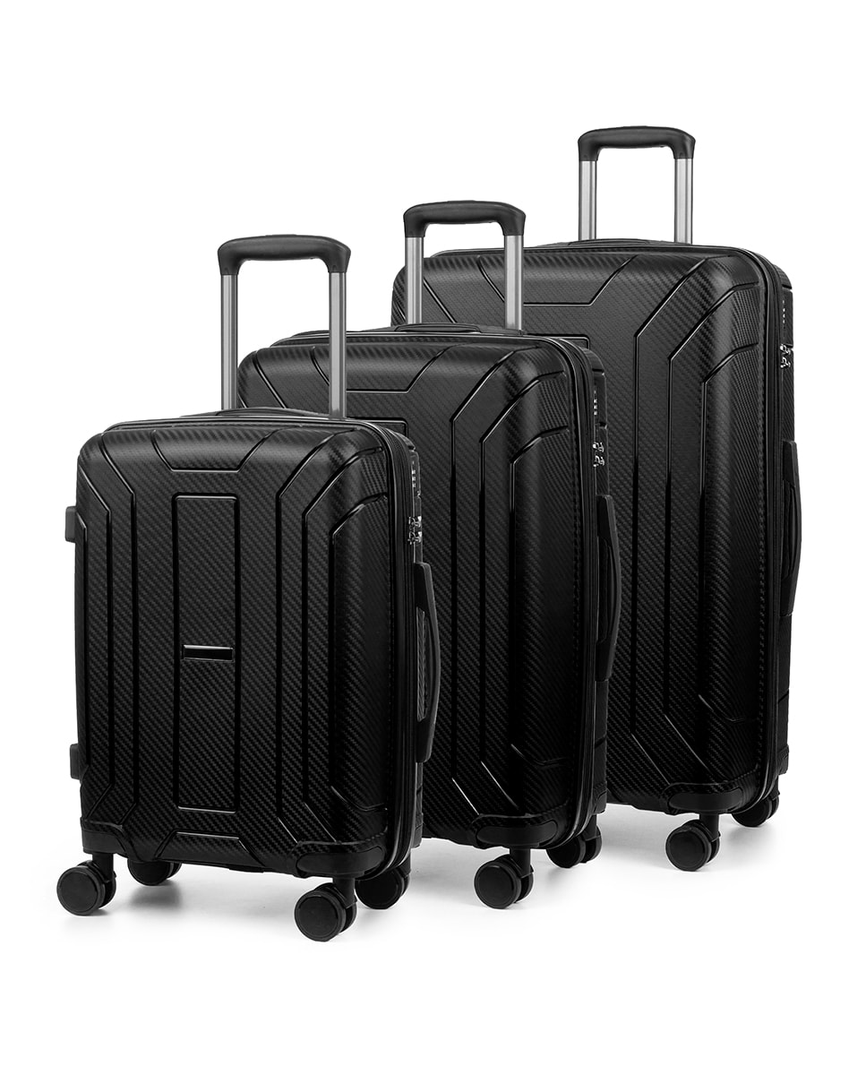 Juego de 3 maletas trolley expandibles de PP resistente a la rotura. Cerradura TSA numérica, 4 ruedas dobles giratorias 360°.