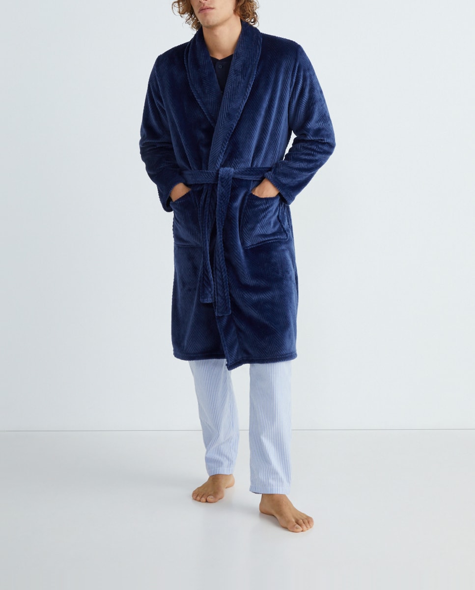 Bata de hombre en velour con dibujo de espiga