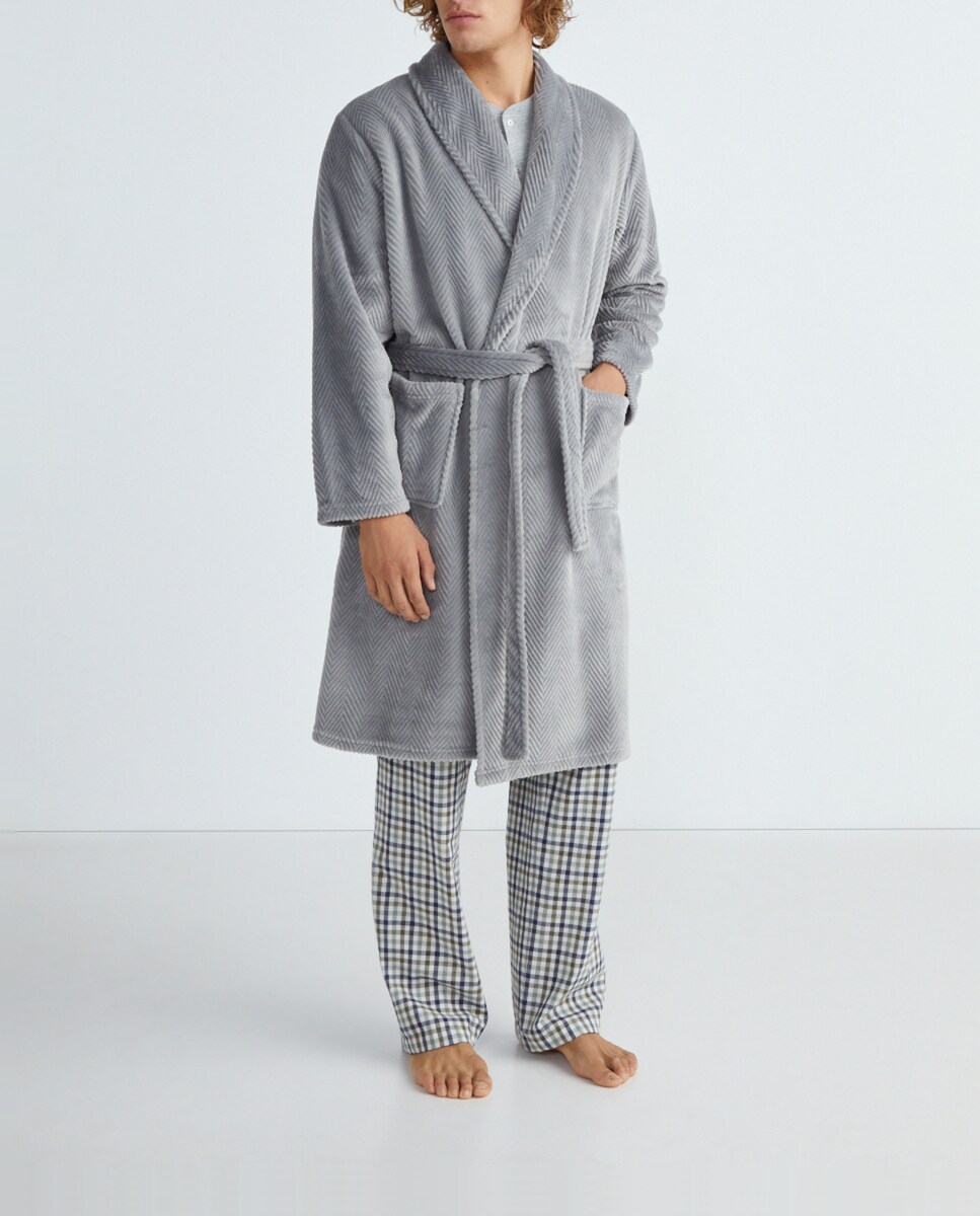 Bata de hombre en velour con dibujo de espiga