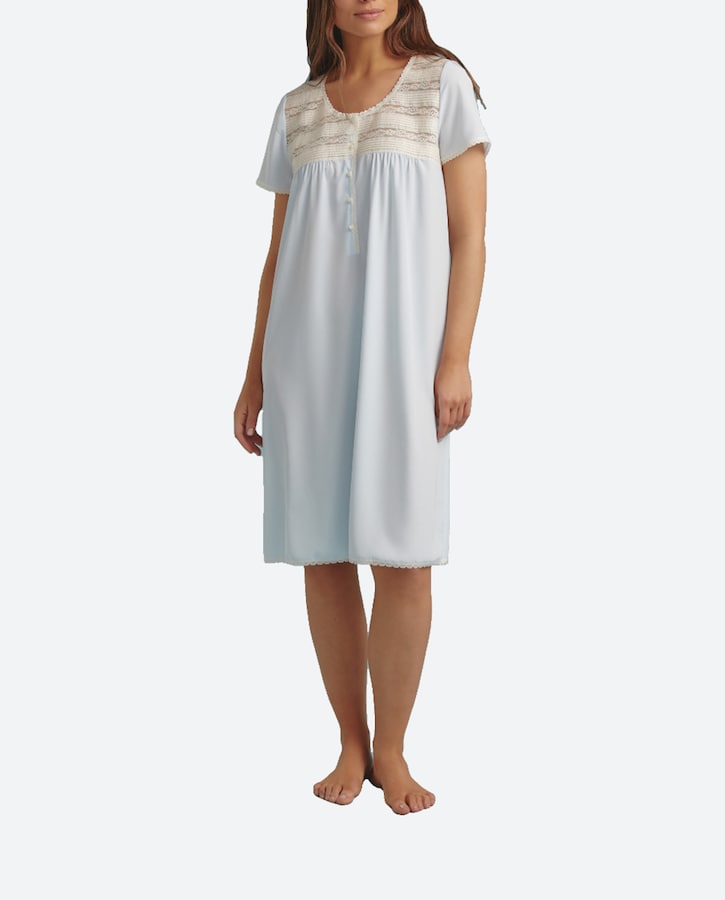 Camisón en microfibra manga corta escotes con tiras de encaje y tapeta