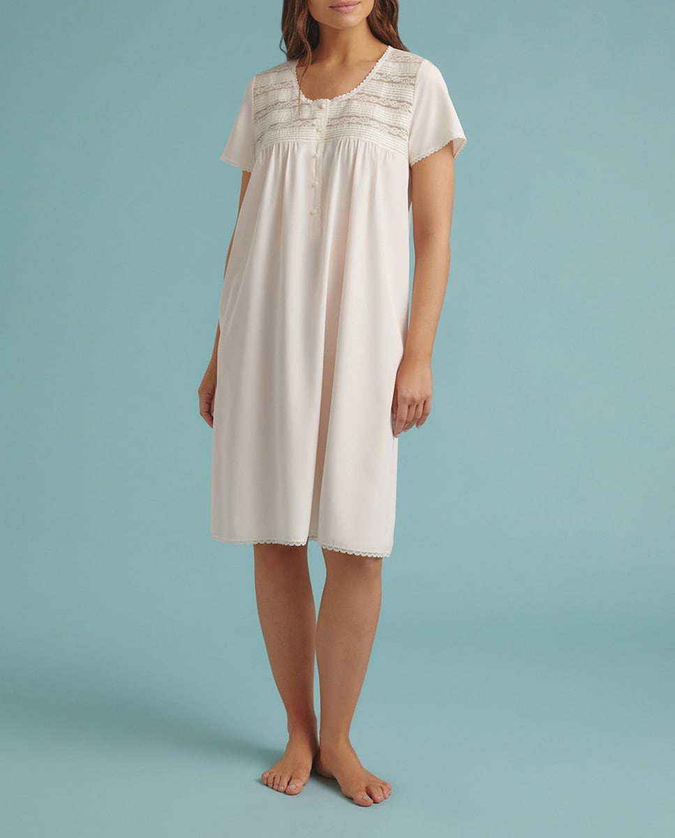 Camisón en microfibra manga corta escotes con tiras de encaje y tapeta