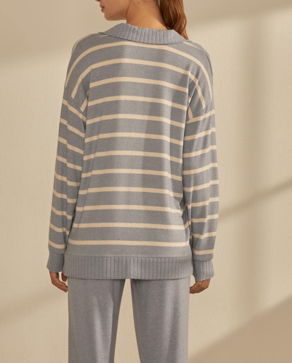 Jersey cuello polo rayas de mujer