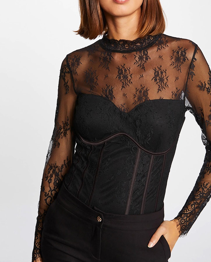 Body manga larga con encaje