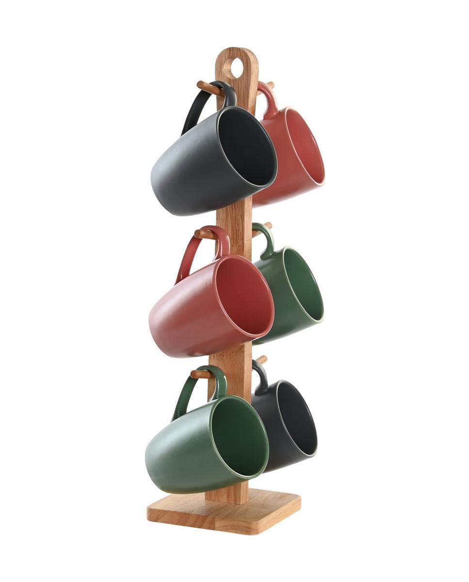 Mug set 6 gres rubberwood 17 x 12 x 39 160 ml, verde