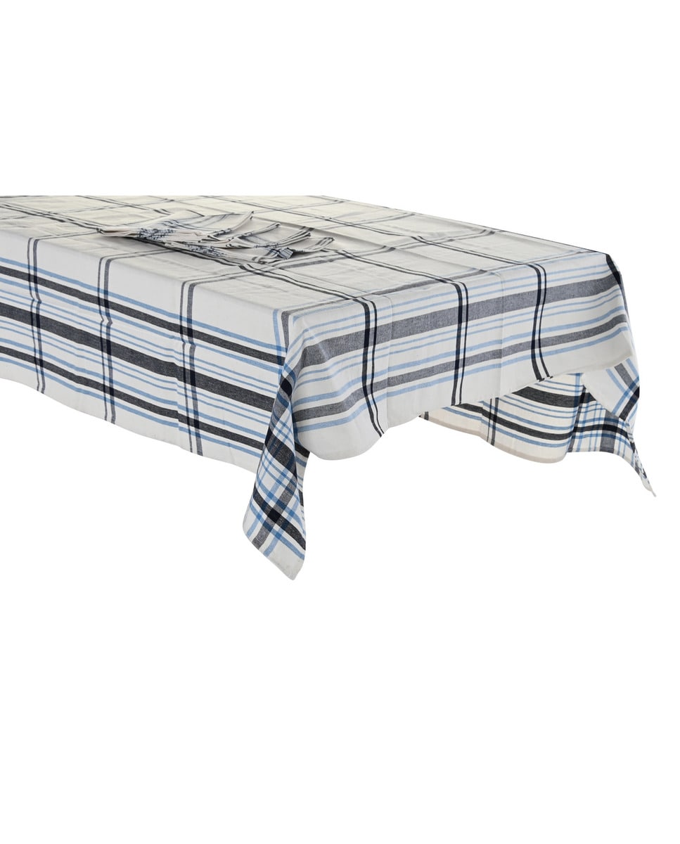 Mantel set 9 algodón 250 x 150 x 0,5 cuadros azul