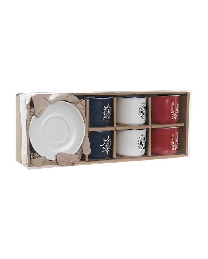 Café set 6 gres 12,5x12,5x2 150ml, grabado azul