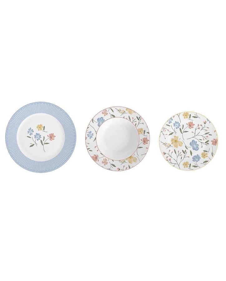 Vajilla set 18 porcelana 27x27x3 floral azul