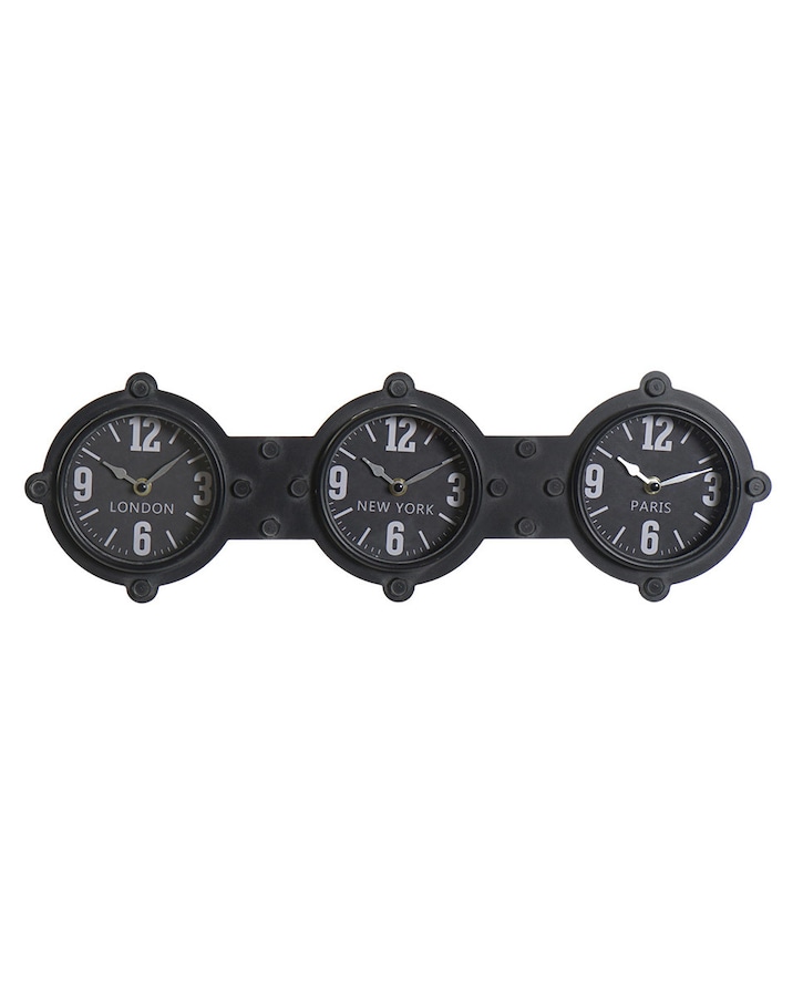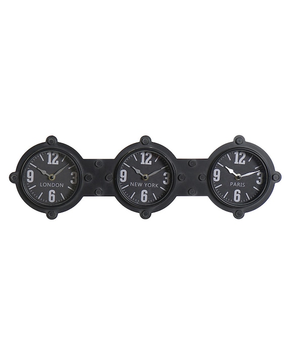Reloj pared hierro cristal negro