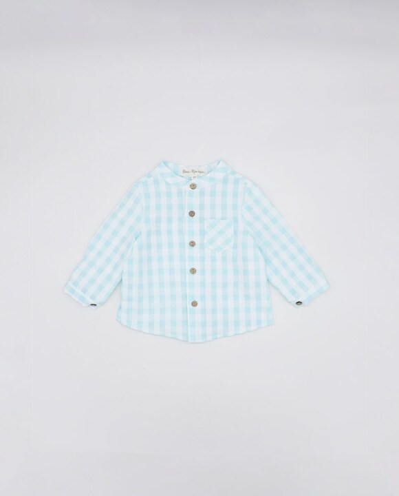 Camisa vichy turquesa con bolsillo