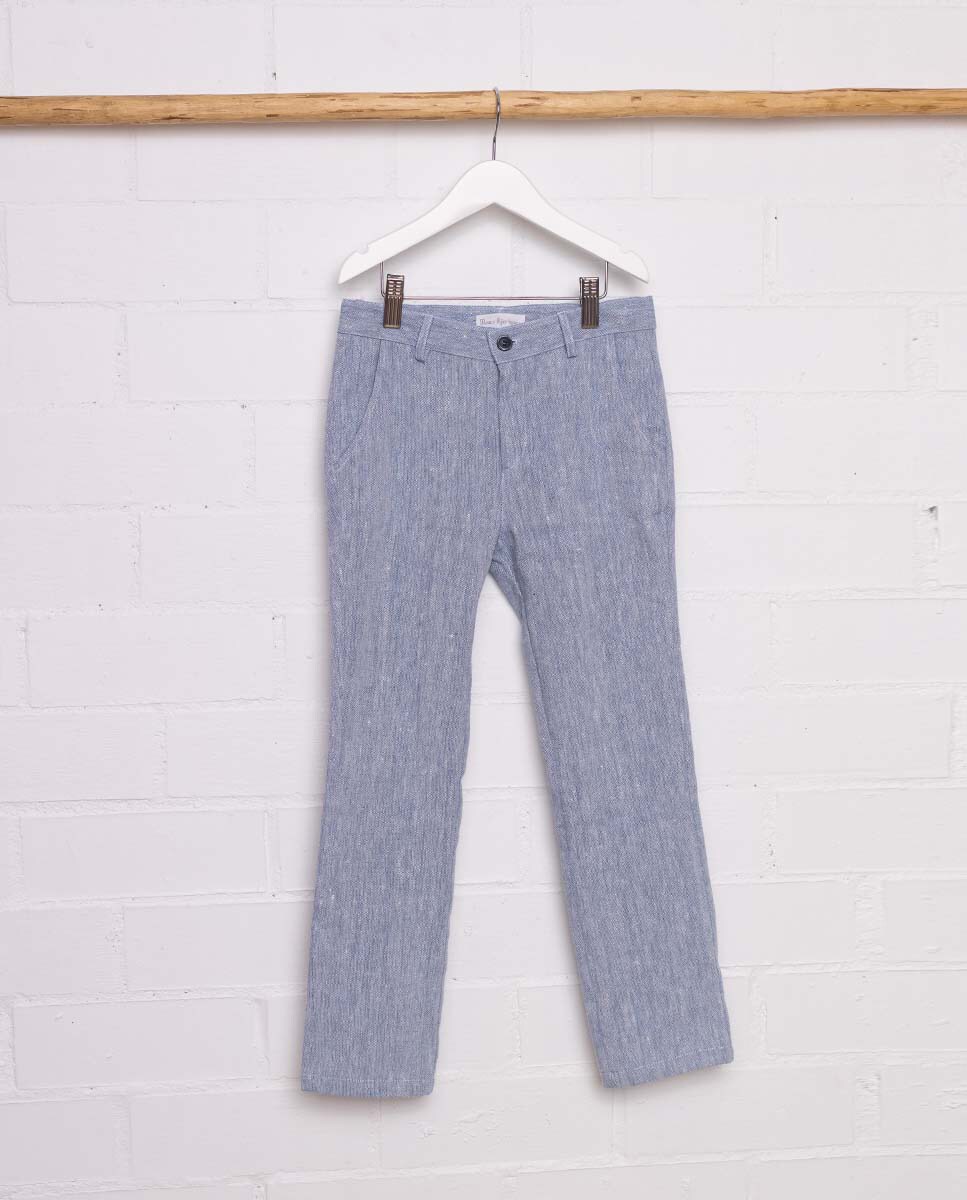 Pantalón lino rústico azul