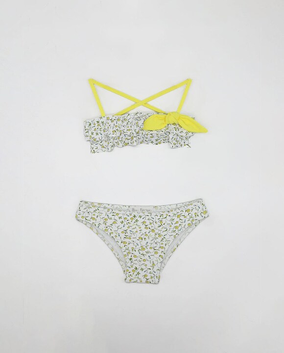 Bikini florecitas amarillas con tirantes y lazo amarillo