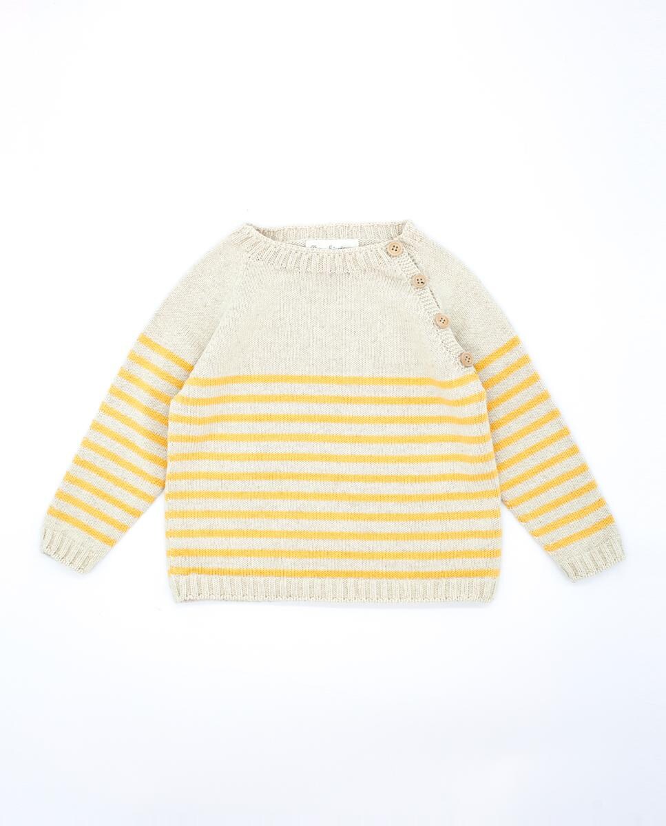 Jersey de rayas amarillas. Abertura con botones en el lateral del cuello.