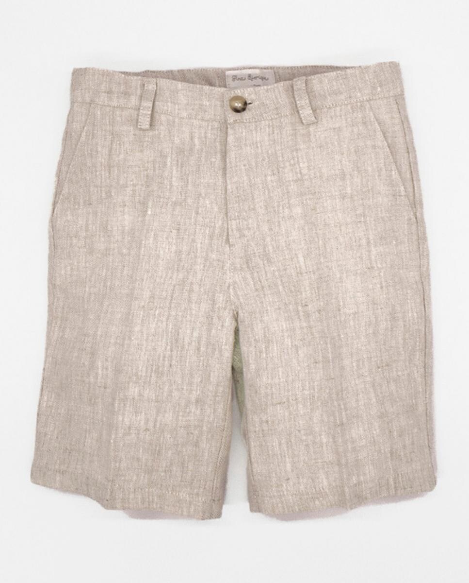 Bermuda de lino rústico natural. Con bolsillos y bragueta.