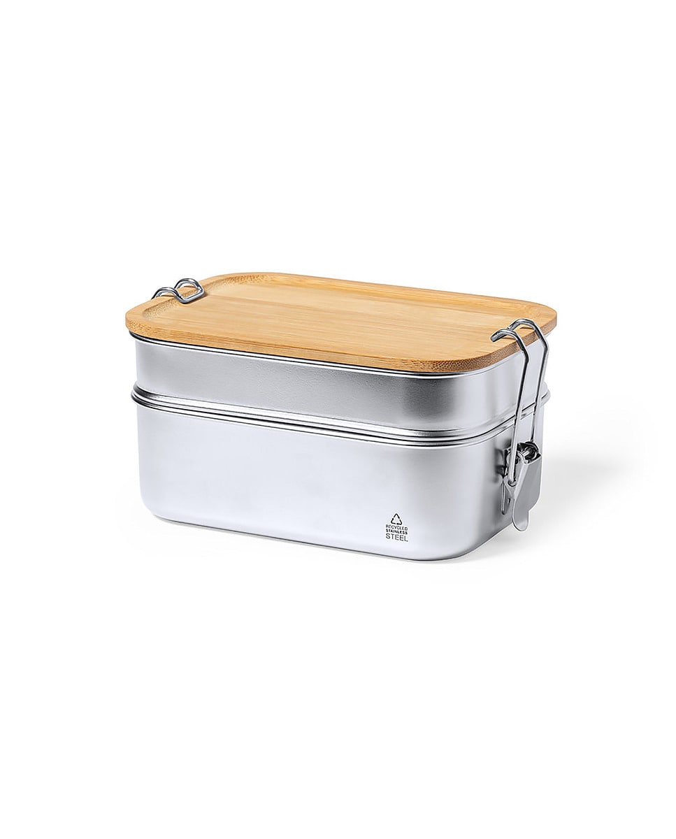 Fiambrera 2 Compartimentos 340 y 600 ml. Cierre Seguridad 17.00x11.50x8.50 Cm. Color: Plata