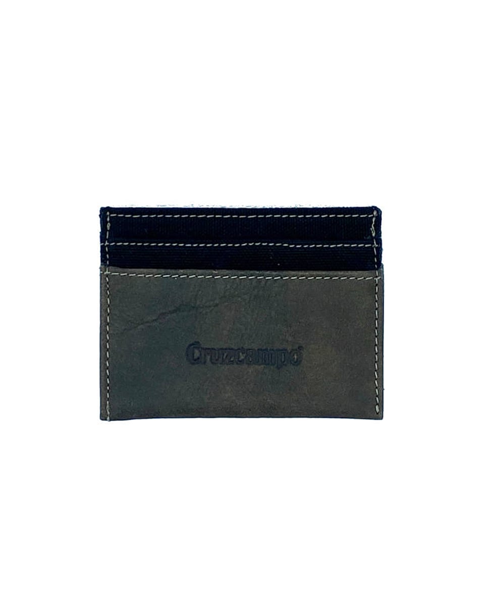 Tarjetero Cruzcampo Lona y Piel Negro y Marrón