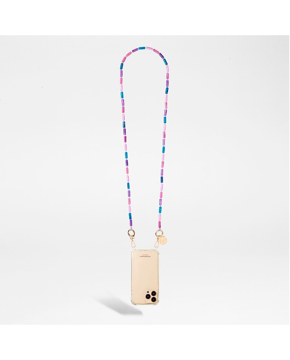 Cadena de bisutería Emily La Coque Française 120 cm de largo cuentas rosa y azul púrpura con hilo rosa neón y mosquetones dorados