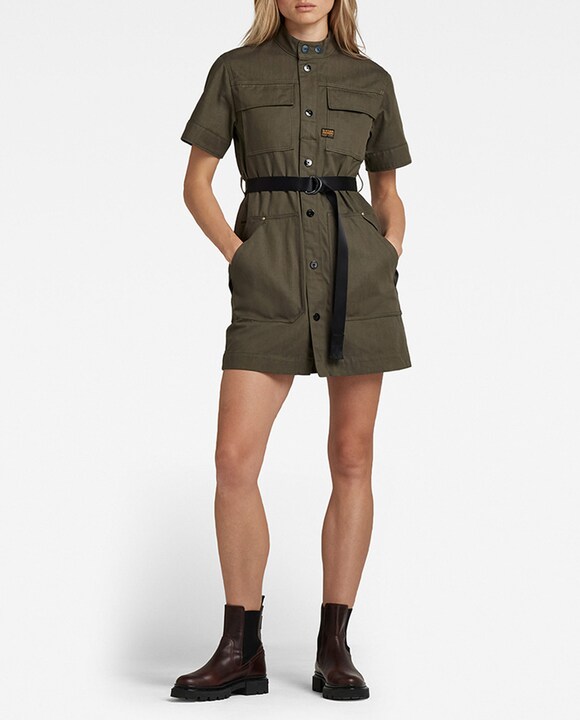 Vestido Shirt Short Sleeve con cuelllo mao y cierre de botones a presión