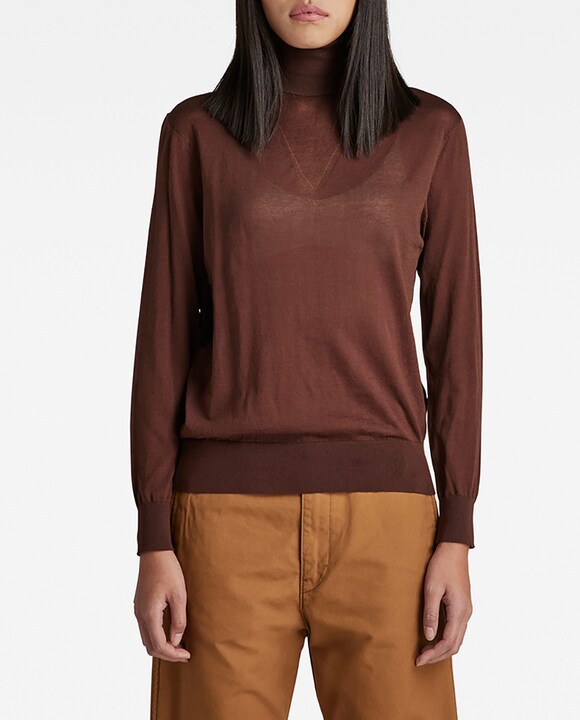 Jersey de mujer Core Roll Neck Knitted de corte recto y ligeramente transparente