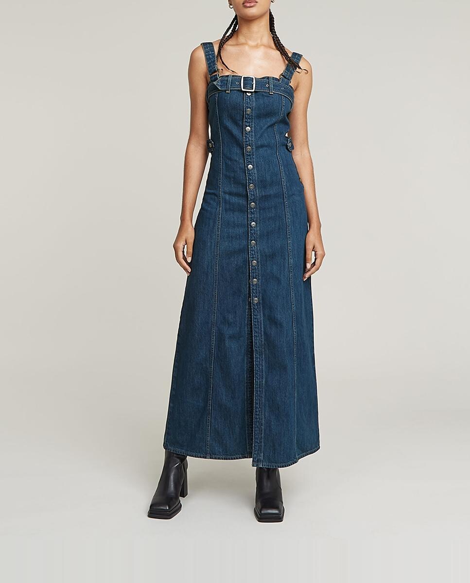 Vestido Denim Snap extralargo y pronunciado por detras