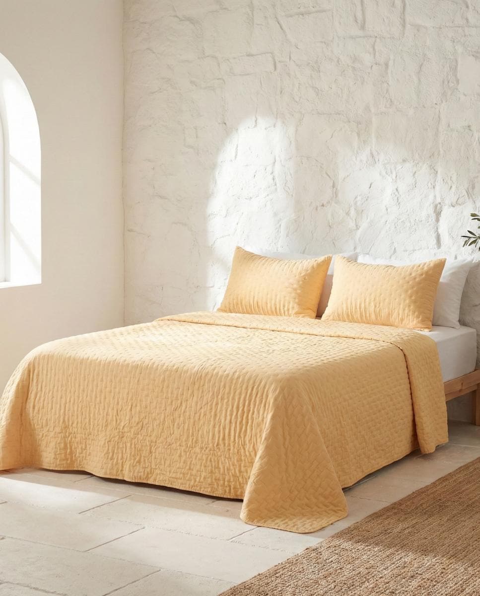 Colcha acolchada con funda cojín Mostaza