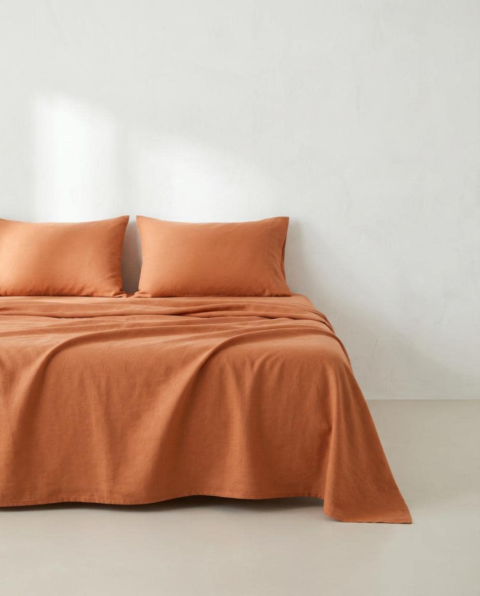 Juego de sábanas liso 100% algodón teja