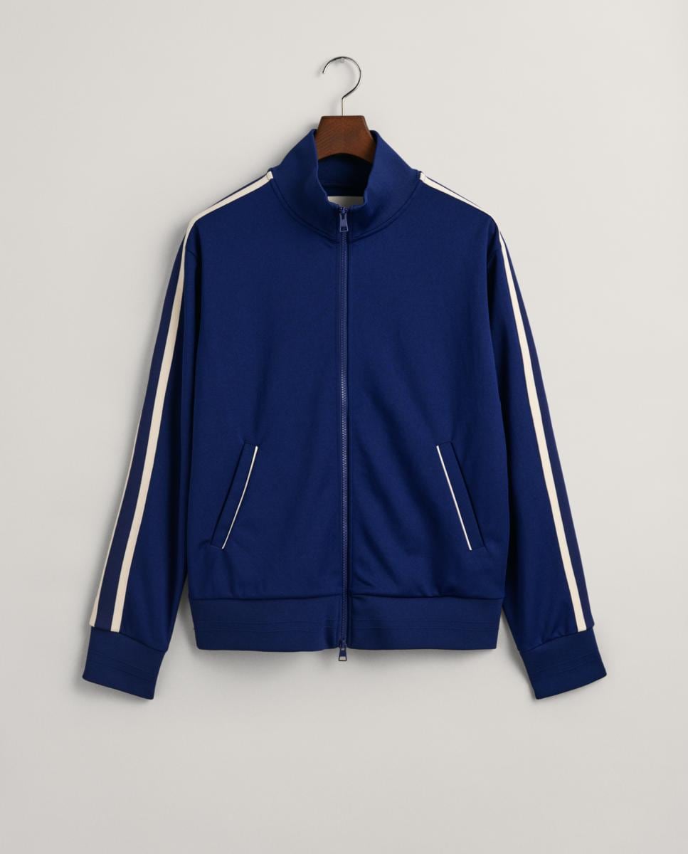 Chaqueta de chándal de hombre de corte regular, con ribetes suaves, cinta lateral y logo bordado en la espalda.