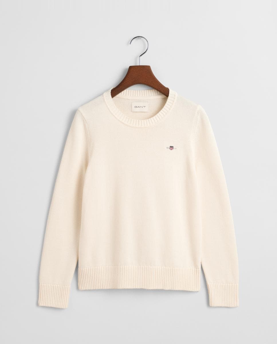 Jersey de mujer de cuello redondo detalles acanalados en el bajo y puños