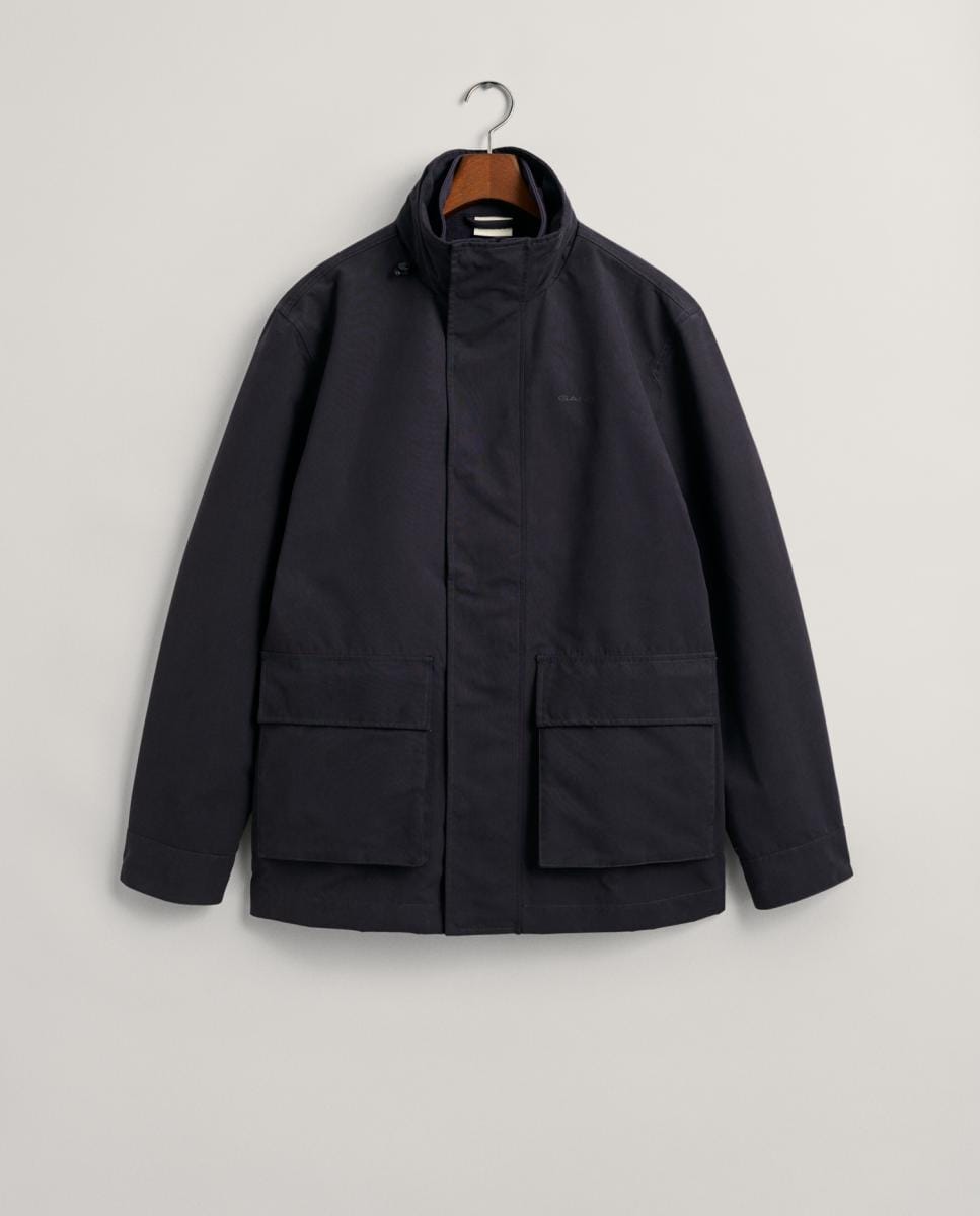 Chaqueta 2 en 1 de hombre, versátil y repelente al agua, con capucha de emergencia, cierre oculto y chaqueta interior desmontable con bolsillos.