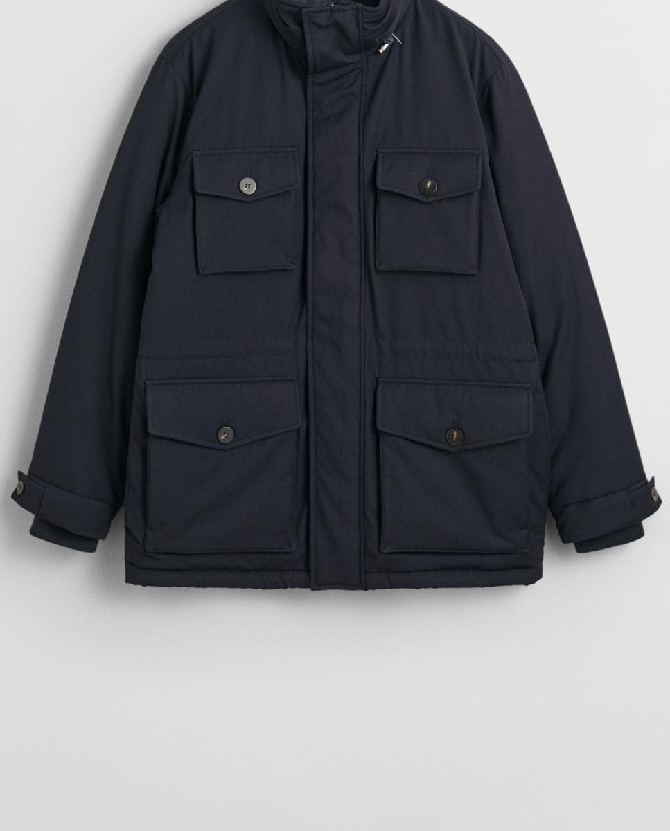 Cazadora militar de hombre, cálida y funcional, con cierre frontal, bolsillos de parche y relleno acolchado de poliéster reciclado.