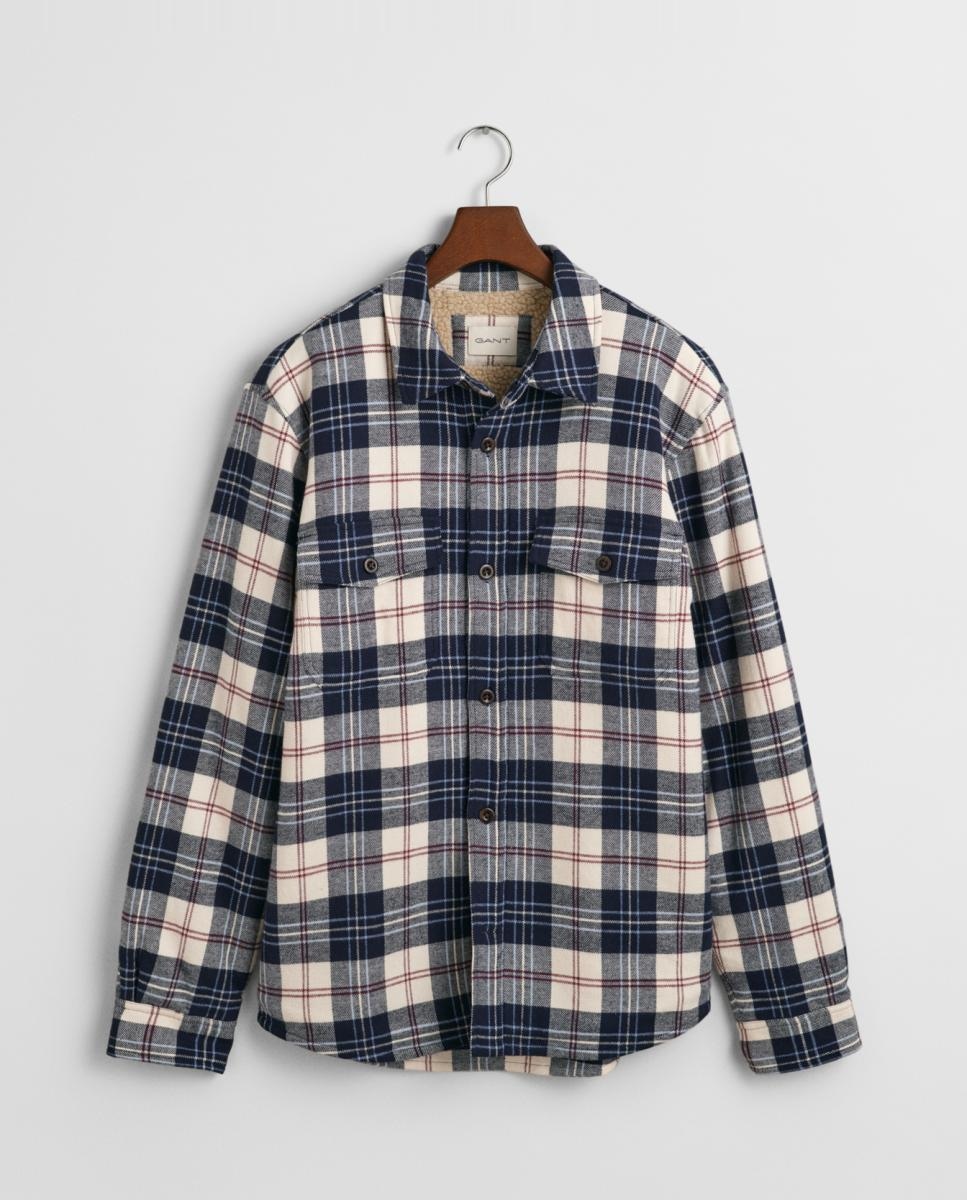 Sobrecamisa de hombre en sarga ligera con forro sherpa, corte regular y diseño de cuadros.