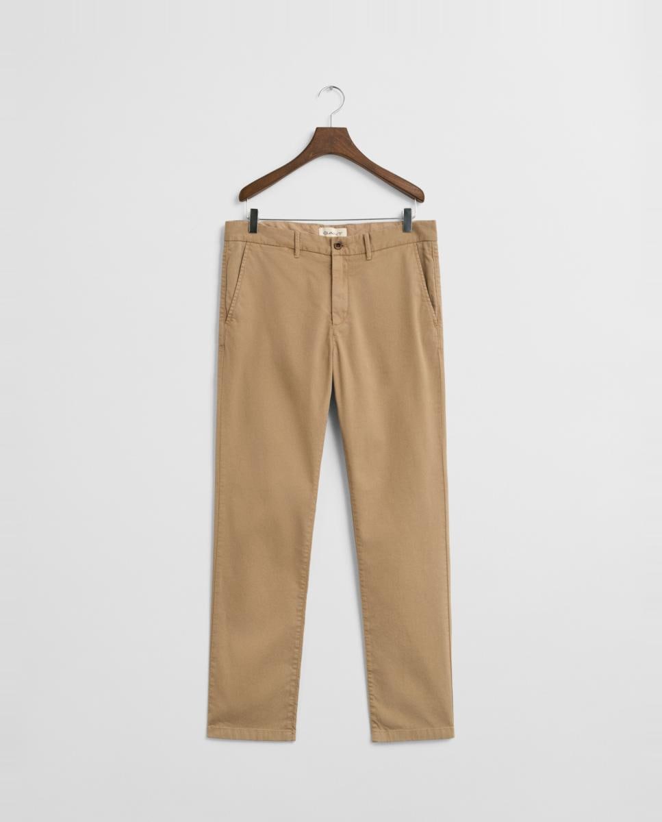 Pantalón chino de hombre de mezcla de algodón con elasticidad, corte slim, talle medio y bolsillos delanteros oblicuos y traseros con ribete.