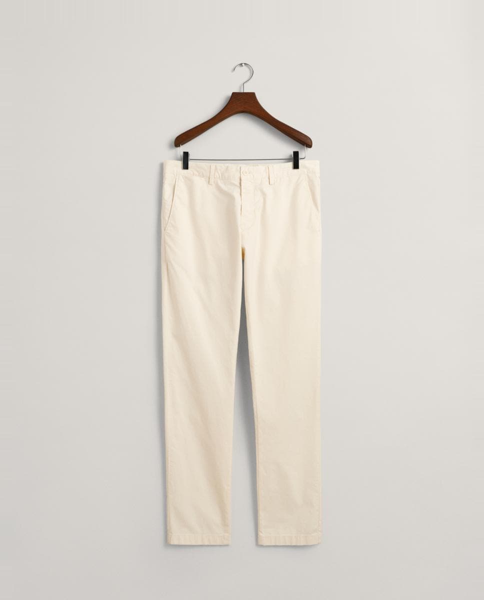 Pantalones chinos de hombre en algodón elástico con corte slim y efecto desteñido.