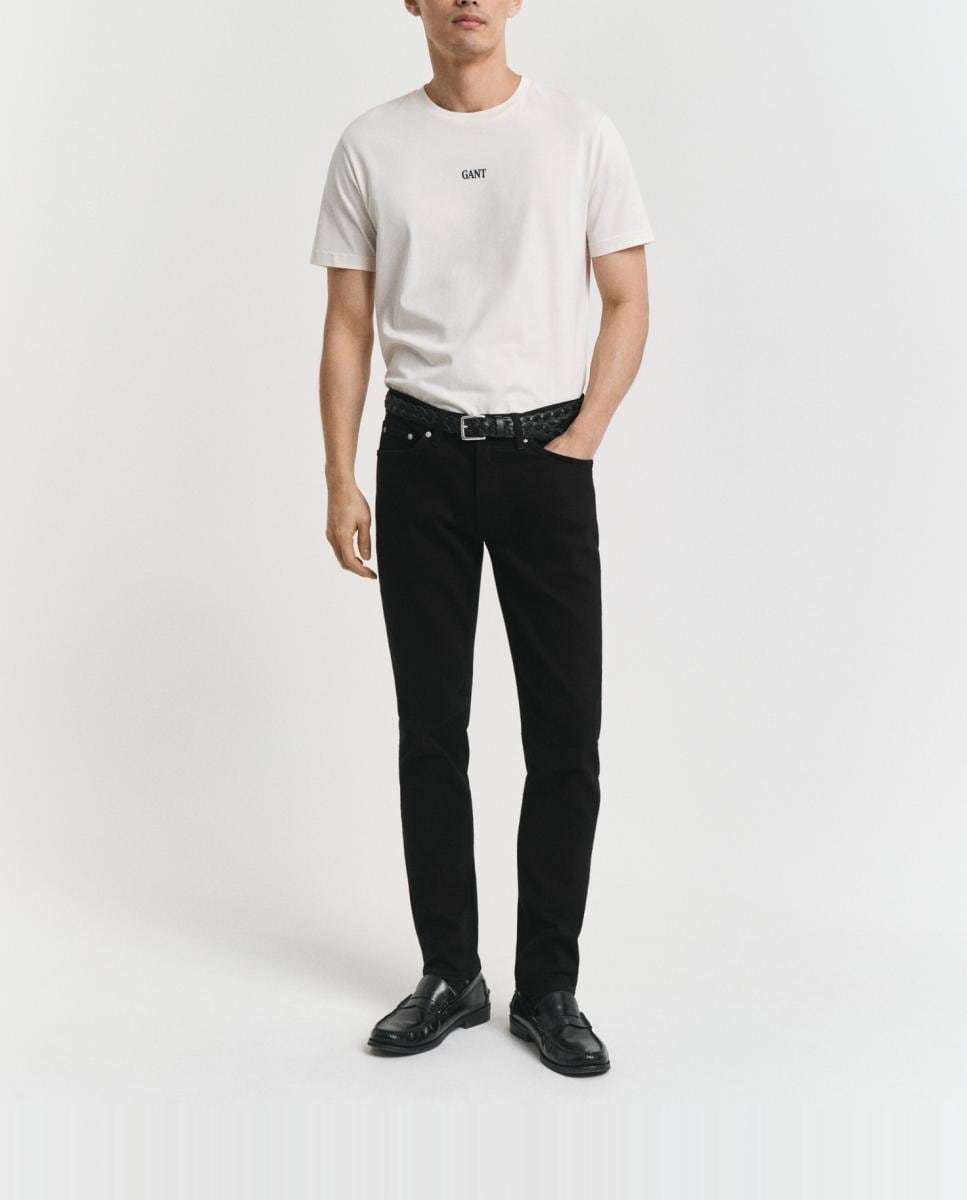 Vaqueros de hombre en mezcla de algodón elástico con corte slim y color negro resistente al desgaste.