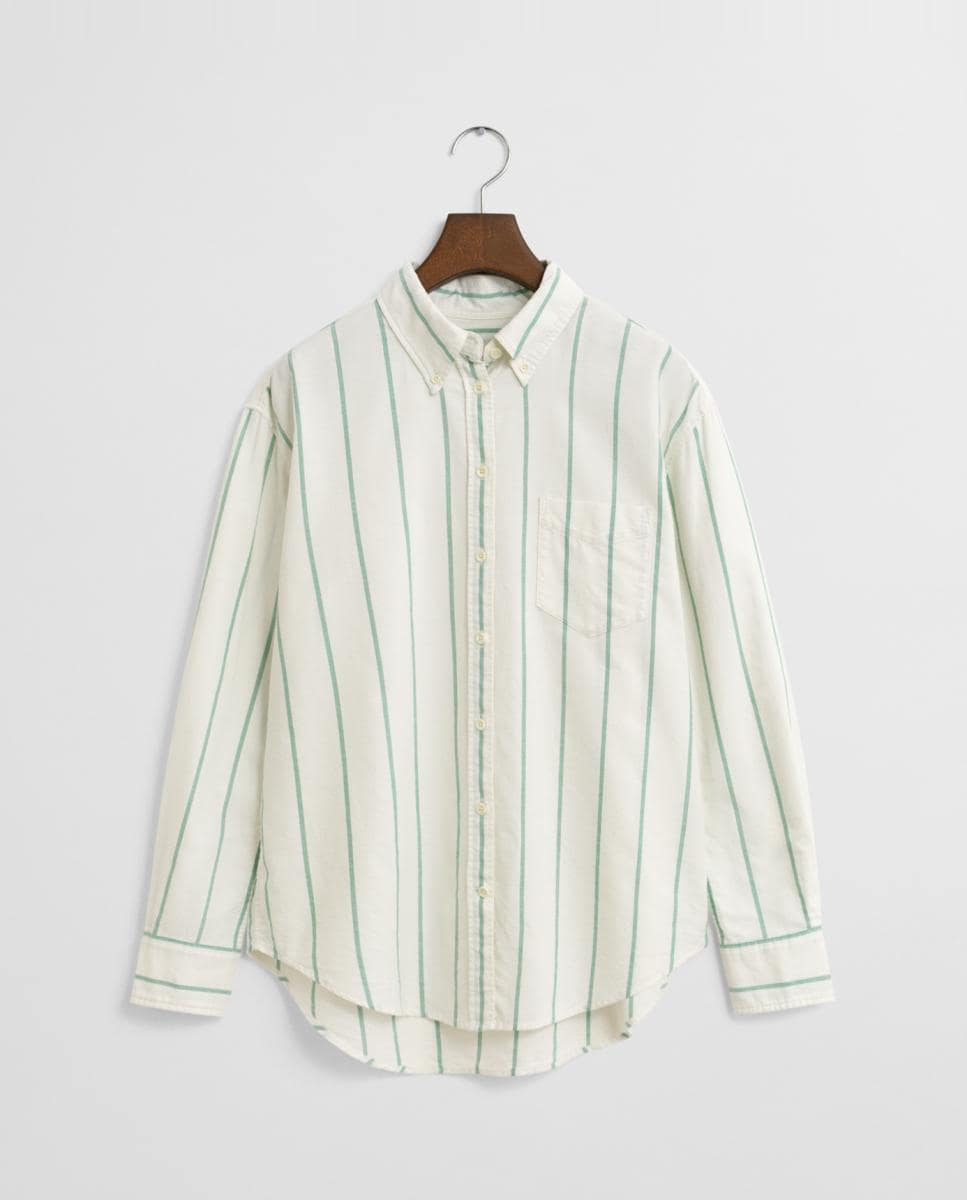 Camisa de mujer oxford con cuello abotonado y estampado rayas