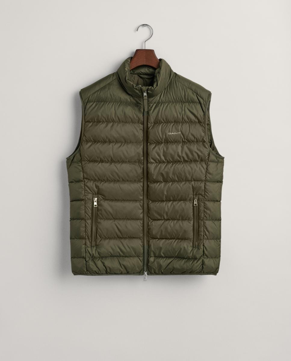 Chaleco de plumón de hombre, ligero y repelente al agua y diseño sostenible para entretiempo.