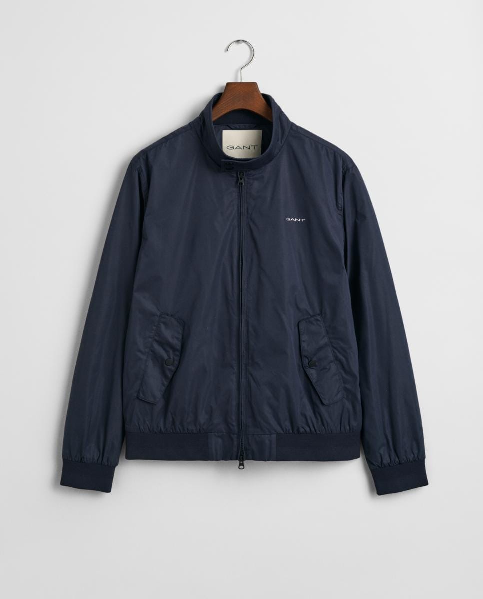 Cazadora Harrington de hombre, ligera y sostenible, repelente al agua, con cremallera bidireccional, cuello recto y bolsillos exteriores e interiores.