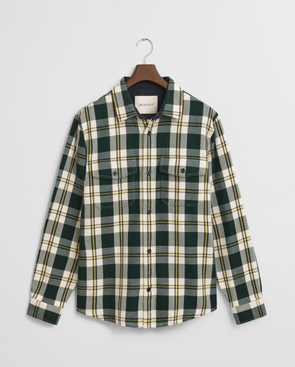 Sobrecamisa de hombre en sarga gruesa de algodón con corte regular y diseño de cuadros teñidos.