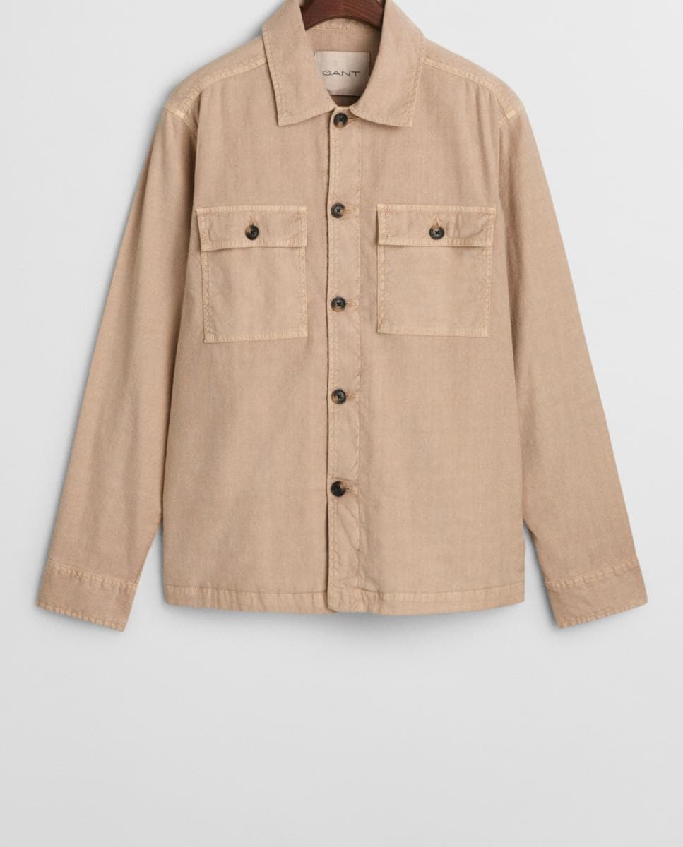 Sobrecamisa de hombre en mezcla de algodón y lino con corte regular y efecto lavado, con bolsillos delanteros y botones de imitación cuerno.