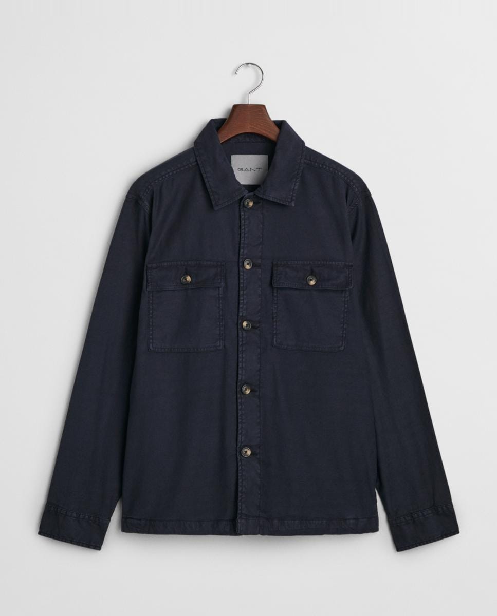 Sobrecamisa de hombre en mezcla de algodón y lino con corte regular y efecto lavado, con bolsillos delanteros y botones de imitación cuerno.