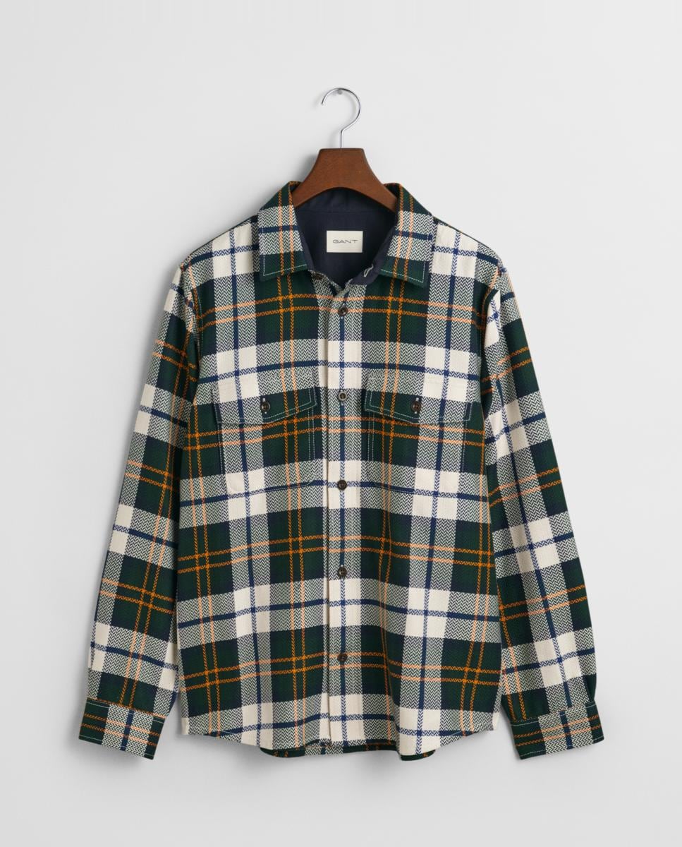 Sobrecamisa de hombre en mezcla de lana con corte regular, diseño de cuadros en textura espiga y bolsillos con solapa.