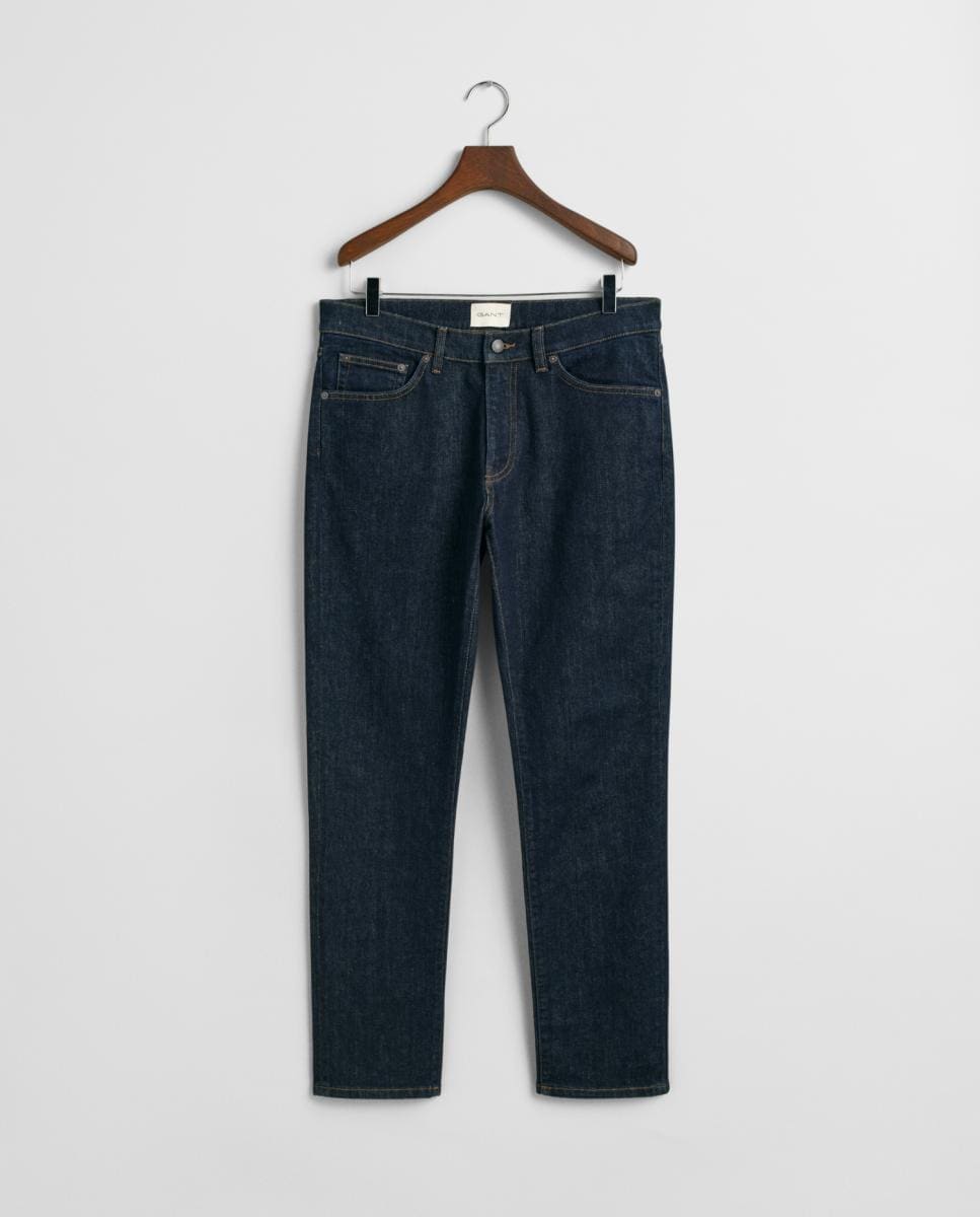 Vaqueros de hombre en mezcla de algodón elástico con corte slim y efecto desgastado.