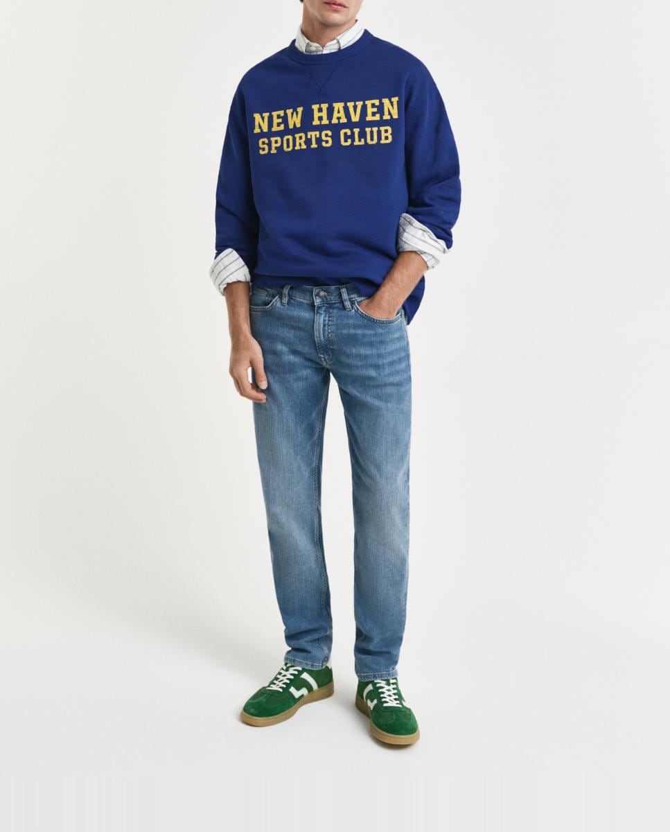 Vaqueros de hombre en mezcla de algodón elástico con corte slim y efecto desgastado.
