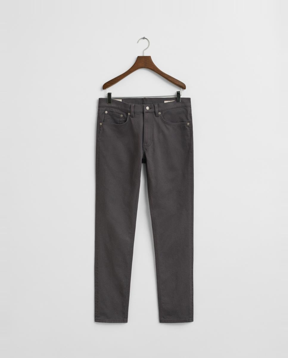 Vaqueros de hombre en sarga cepillada elástica con corte slim y diseño de cinco bolsillos.