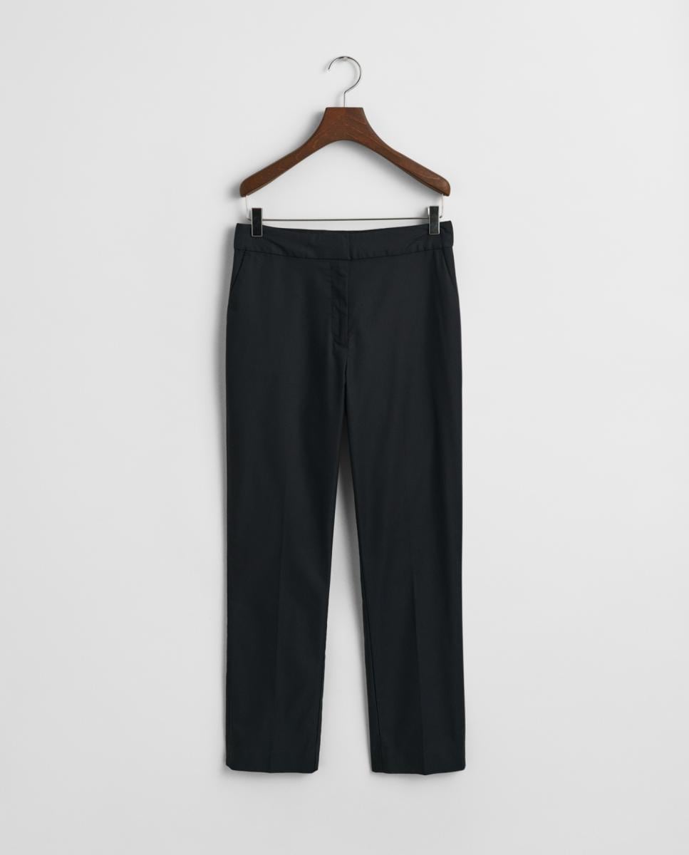 Pantalones de mujer en mezcla de algodón con corte slim y largo tobillero.
