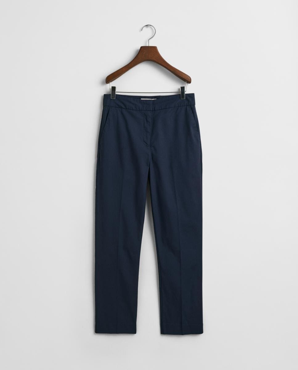 Pantalones de mujer en mezcla de algodón con corte slim y largo tobillero.