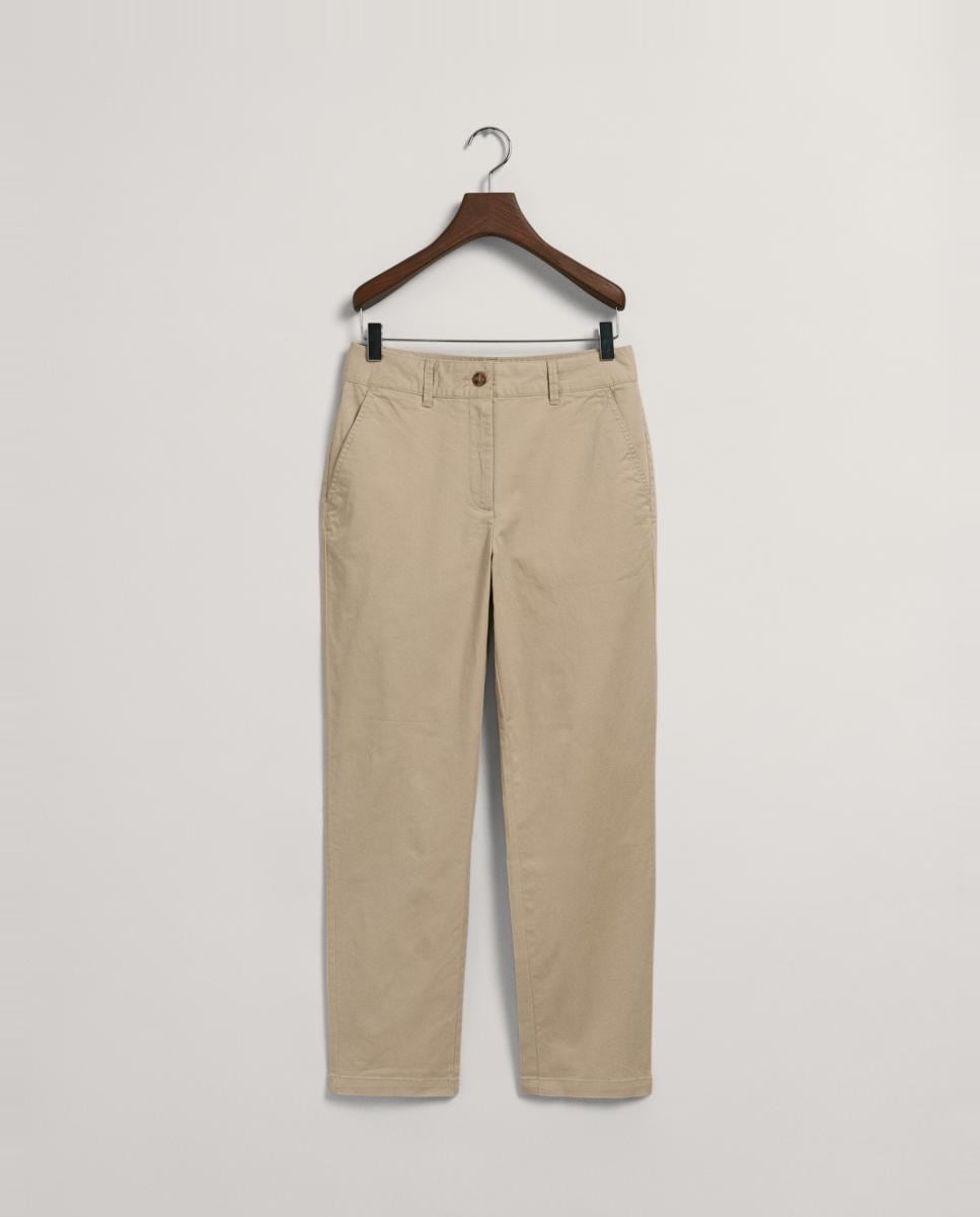 Pantalones de mujer slim fit en tejido cómodo con bolsillos delanteros y diseño estilizador.
