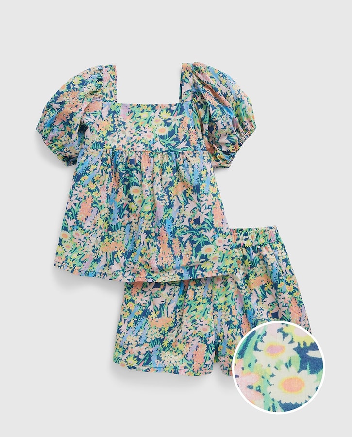 Conjunto de niña pantalón corto y camisa de flores